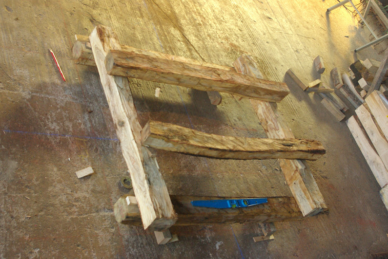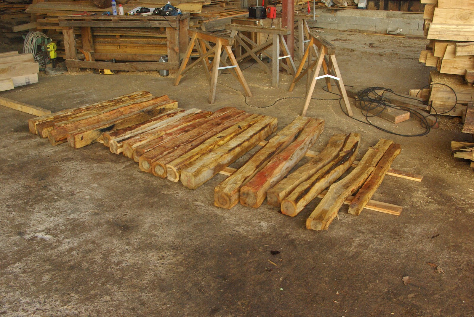 | tracer la section de la poutre avec un niveau une fois le bois fixé avec des clameaux |